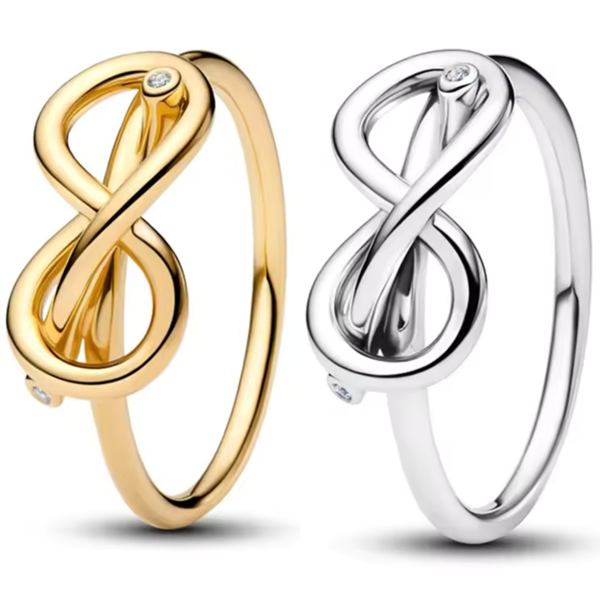 Embrace the timeless elegance of the Elegant Infinity Ring. This delicate piece features an infinity symbol delicately placed on top, representing eternity and endless love. Available in gold or silver, it goes with everything, bringing a subtle touch of meaning and refinement to your everyday life.