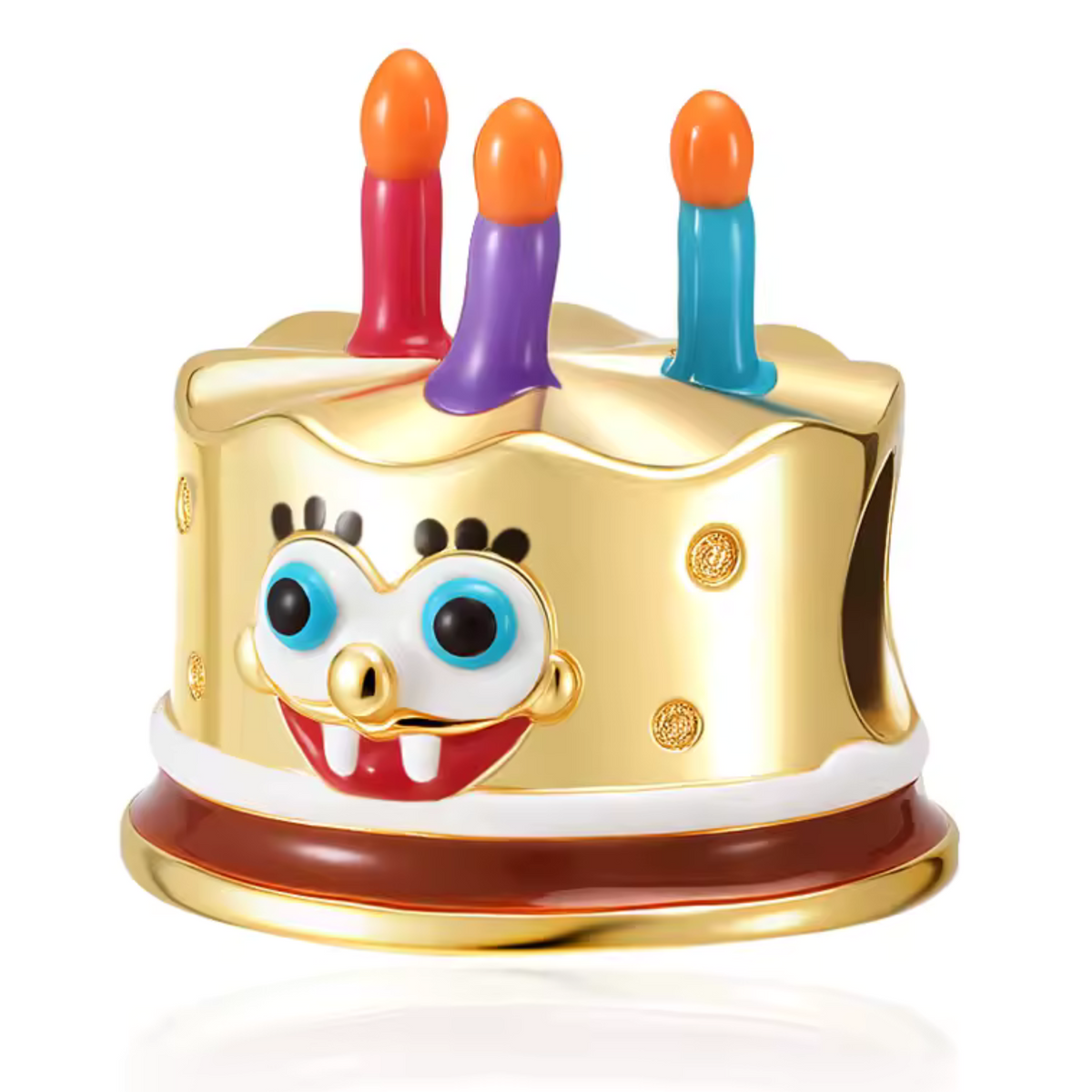 Add a touch of humor and whimsy to your collection with this 925 silver pendant charm featuring a birthday cake version of SpongeBob SquarePants. With its colorful details and unique design, this piece of jewelry is perfect for fans of the quirky world of Bikini Bottom who like to stand out.