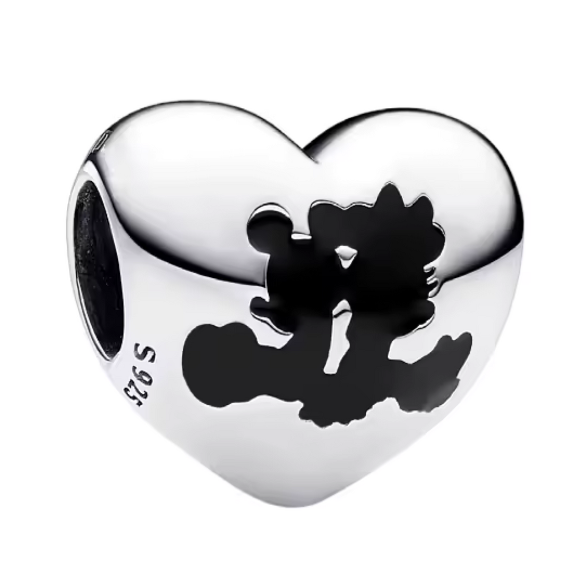 Add a touch of romance and magic to your collection with this heart-shaped charm featuring Mickey and Minnie, the famous Disney characters. Crafted from 925 sterling silver, this high-quality charm is compatible with all Pandora bracelets, ensuring a seamless fit into your favorite piece. Perfect for fans of Mickey, Minnie, and the Disney universe, this charm captures the eternal love and joyful spirit of this iconic couple with meticulously crafted details, adding a touch of tenderness and magic to your bracelet.