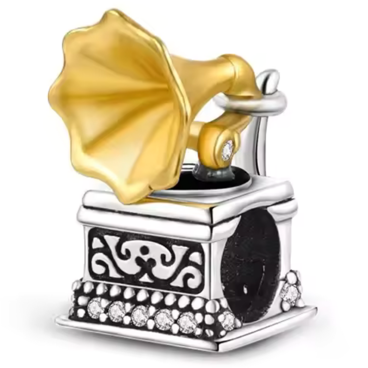 Relive the elegance and nostalgia of a bygone era with this Vintage Gramophone Charm, crafted from S925 sterling silver. This intricately detailed charm captures the timeless beauty of a classic gramophone, a symbol of the days when music resonated through vinyl records. Perfect for music lovers and collectors of vintage memorabilia, this charm will add a touch of retro charm to your bracelet.