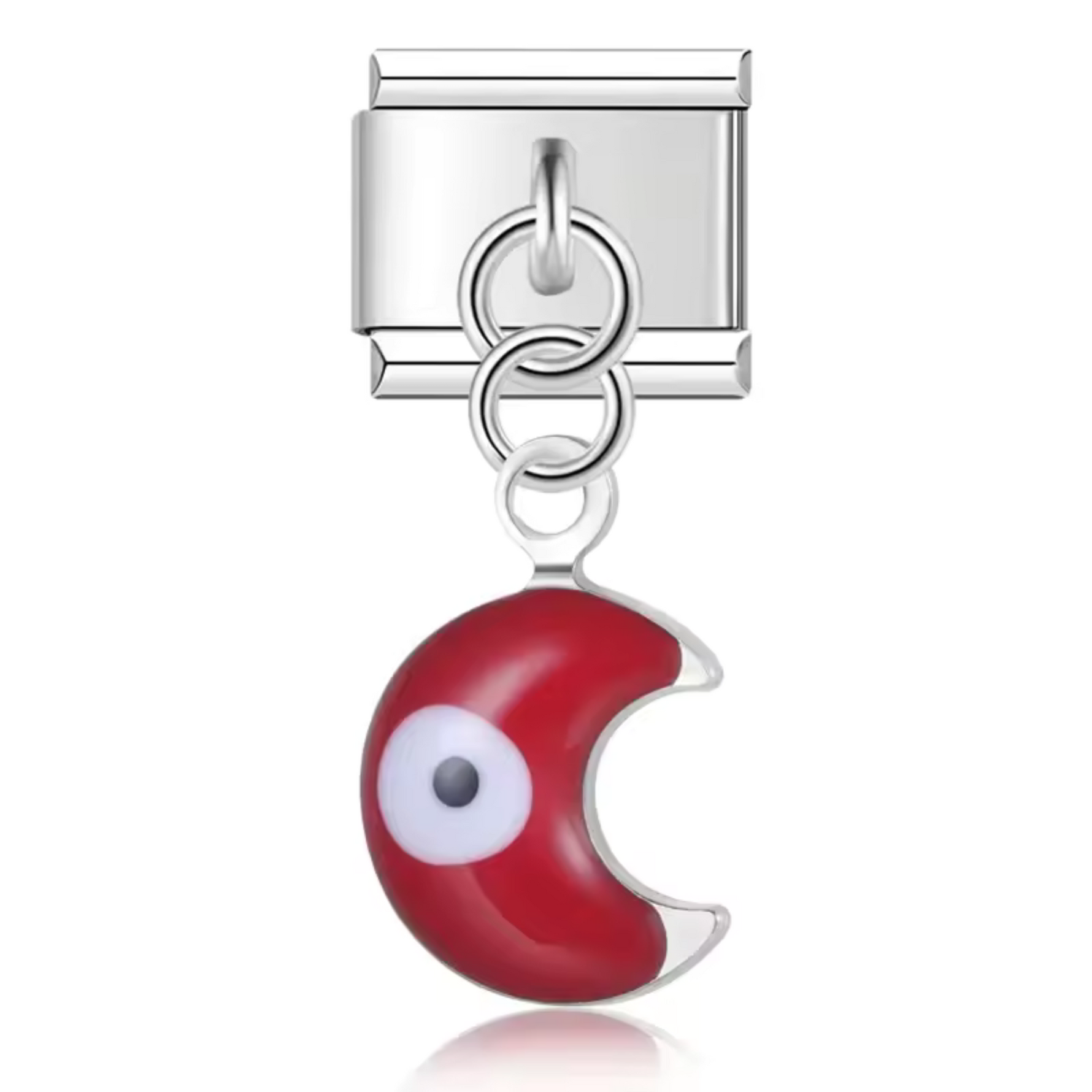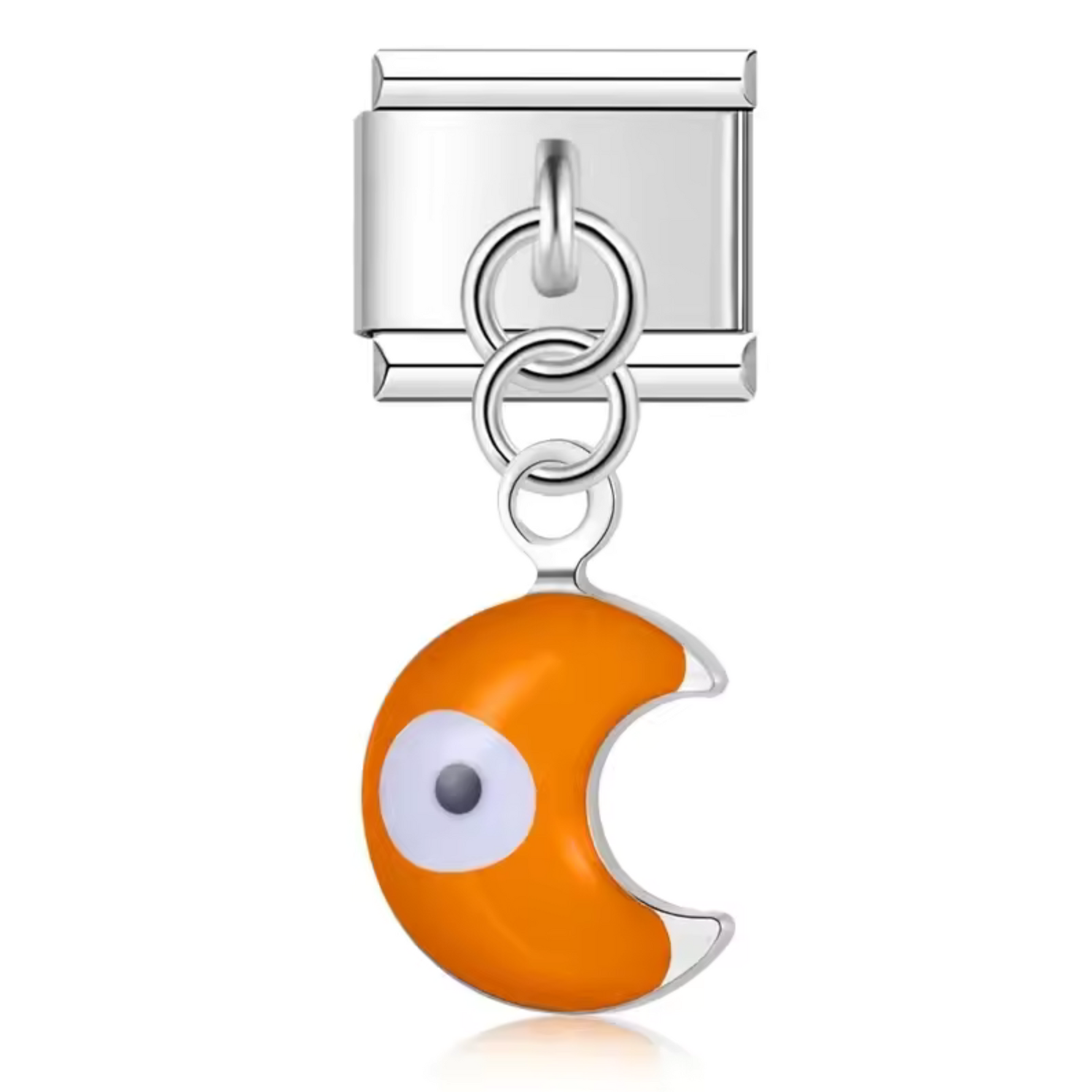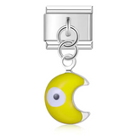 This Italian moon charm pendant is crafted in a silver finish and available in six vibrant colors: pink, navy blue, yellow, orange, light blue, and red. Crafted from high-quality stainless steel, it combines strength and fine detailing for a modern and colorful look. Easy to attach, it fits perfectly with our bracelets, which are made of 17 expandable and adjustable links, suitable for all wrist sizes. Compatible with all our Italian charms, this celestial jewel is ideal for adding a touch of color and charm to your personalized bracelet.