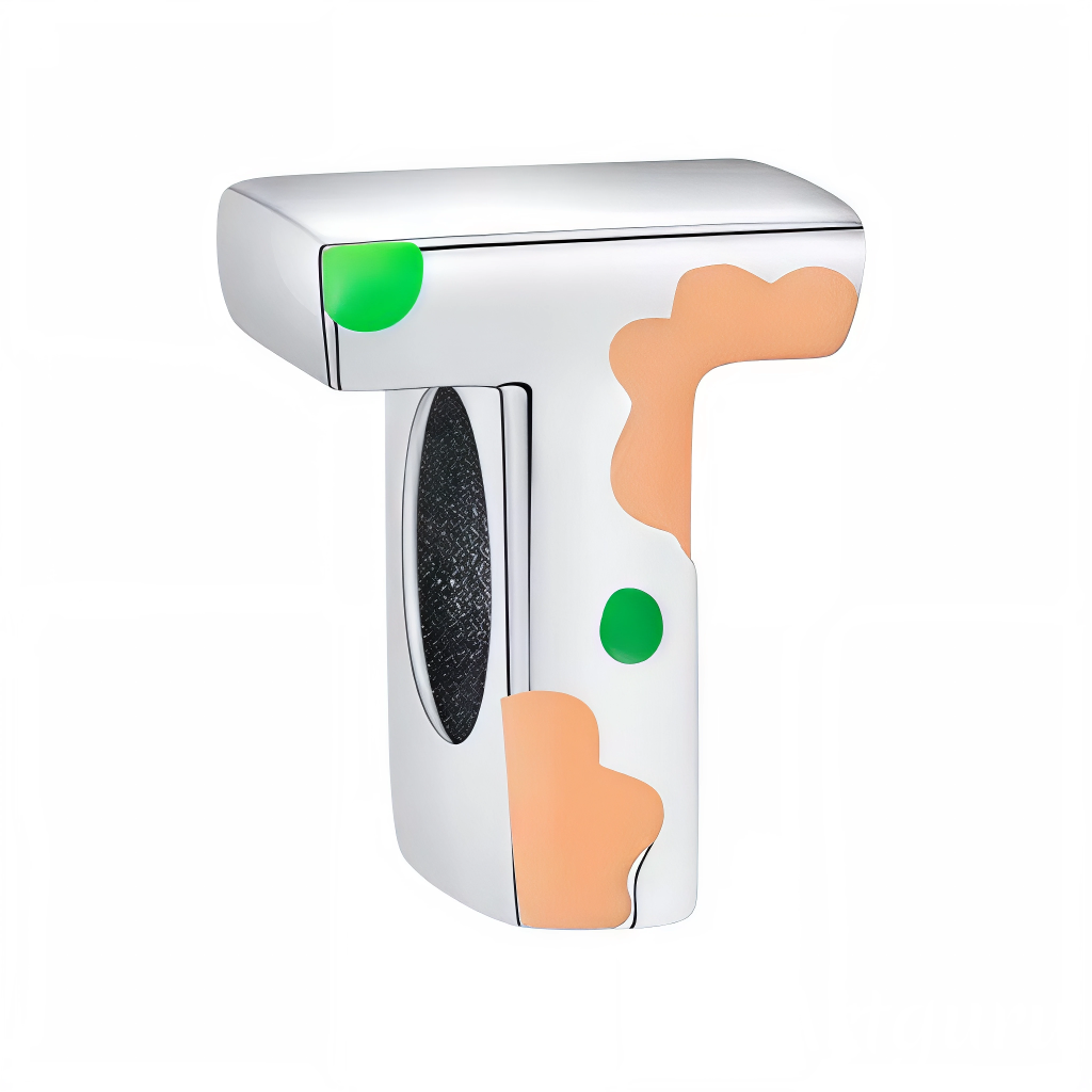 -Design: Silver letter "T", decorated with artistic style color spots, fine workmanship