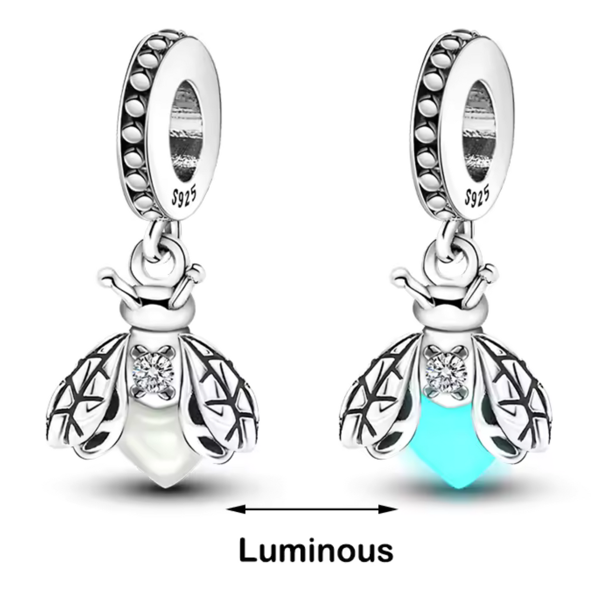 Inspired by the soft glow of fireflies, this pendant charm captures the light of day to delicately illuminate in the dark. Finely crafted in sterling silver, it embodies the beauty of nocturnal nature with a touch of magic. Perfect for those who love to wear a symbol of light and dreams, always within reach.